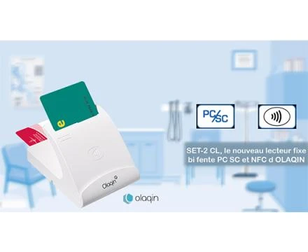 Cette solution bifente PC/SC enrichie d’une interface sans-contact permet de gérer, sur un même lecteur, les cartes de santé (cartes Vitale et CPS), l’application carte Vitale par NFC ainsi que la signature des Feuilles de Soins Électroniques (FSE).